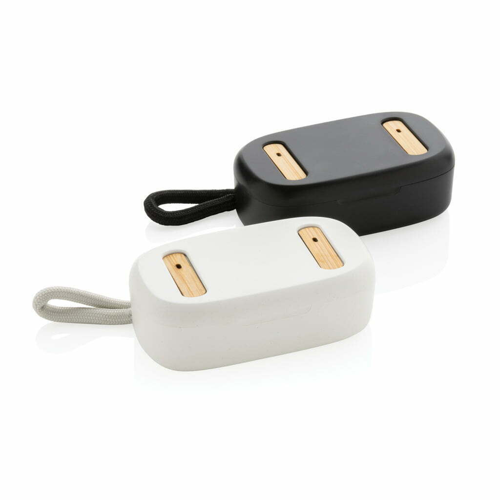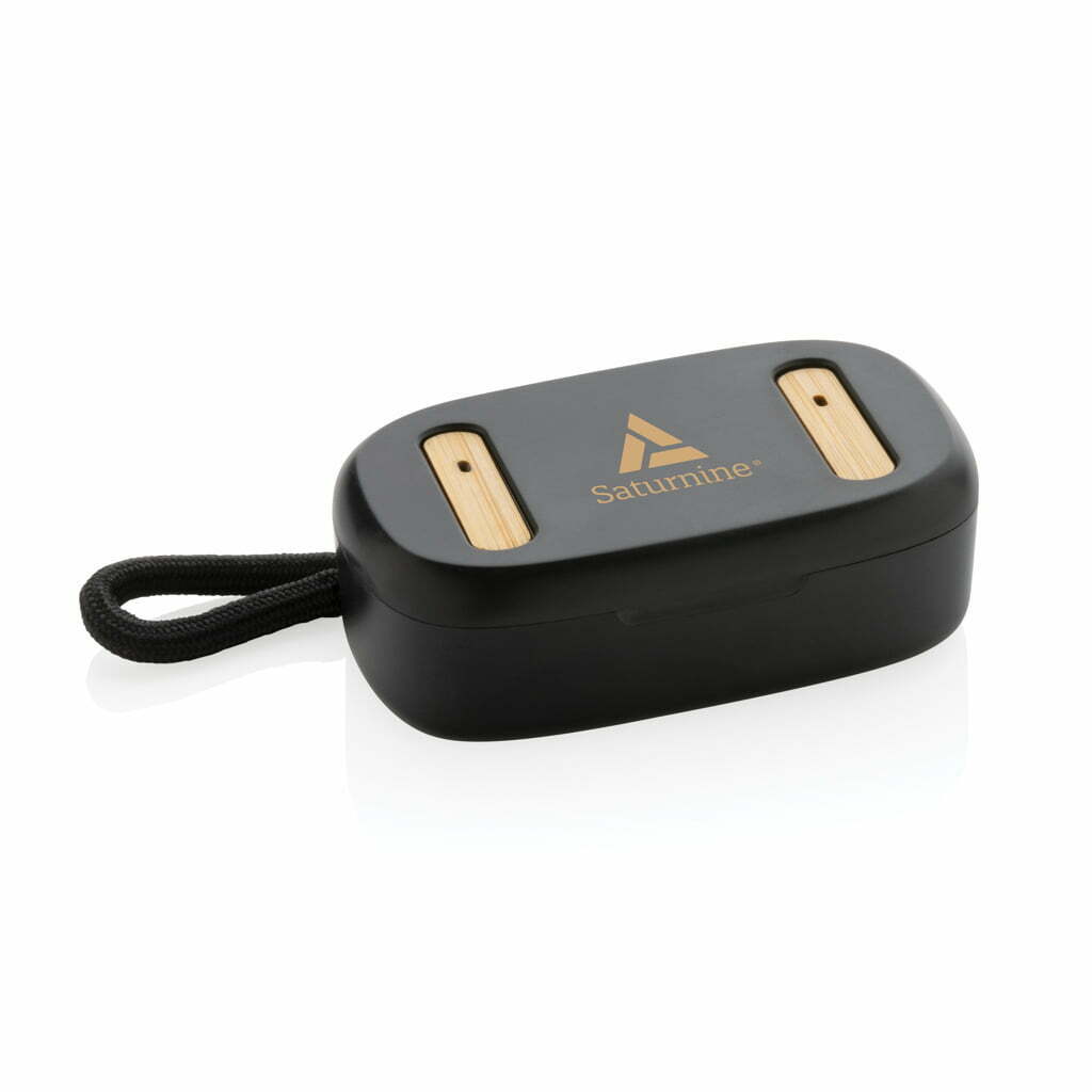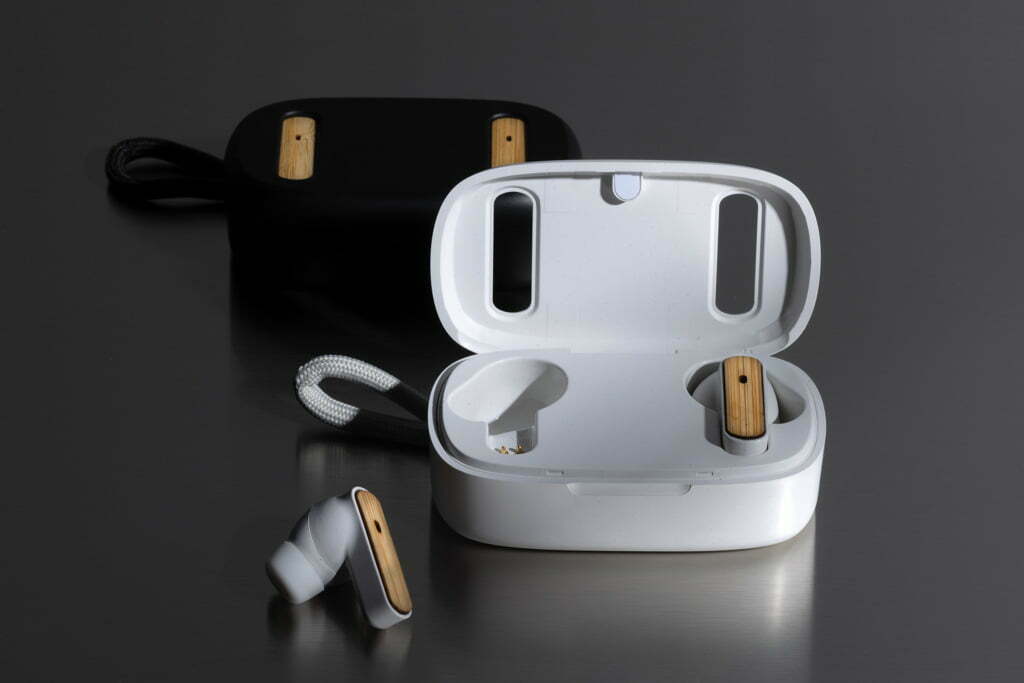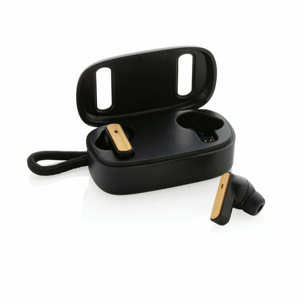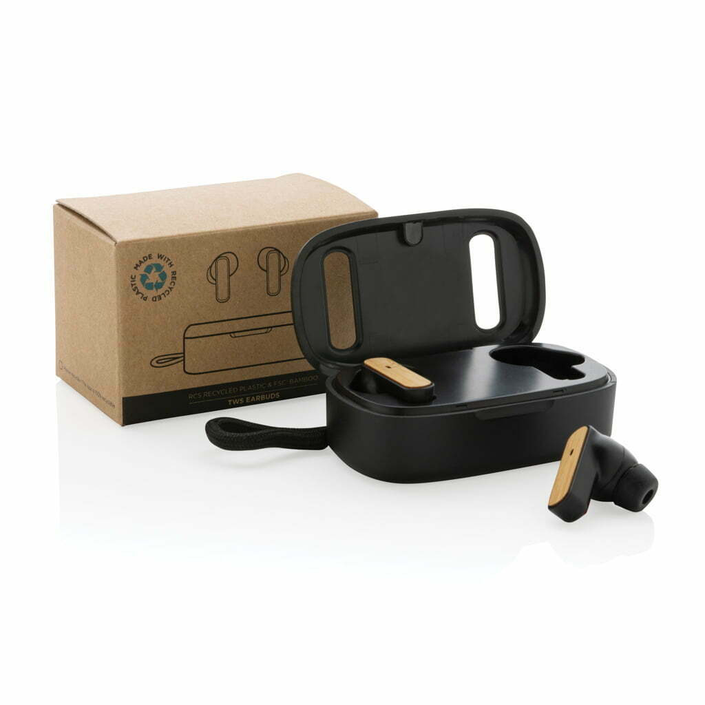 TWS ausinės iš perdirbto plastiko ir bambuko – tai naujos kartos belaidės ausinės, kurios sujungia aukštą technologijų kokybę ir tvarumą. Ausinės pagamintos iš FSC® 100% bambuko ir RCS (Recycled Claim Standard) sertifikuoto perdirbto ABS plastiko. Bendra perdirbtų medžiagų dalis sudaro net 58 % viso gaminio svorio – tai atsakingas ir sąmoningas pasirinkimas.